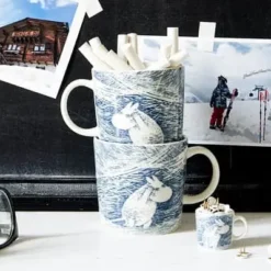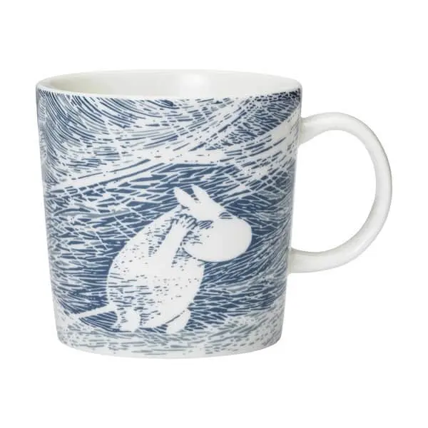 Snestorm-serien fra Arabia er smukt dekoreret med motiver fra Mumitroldenes oplevelser i vinterens stride vejr.
