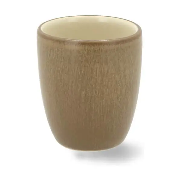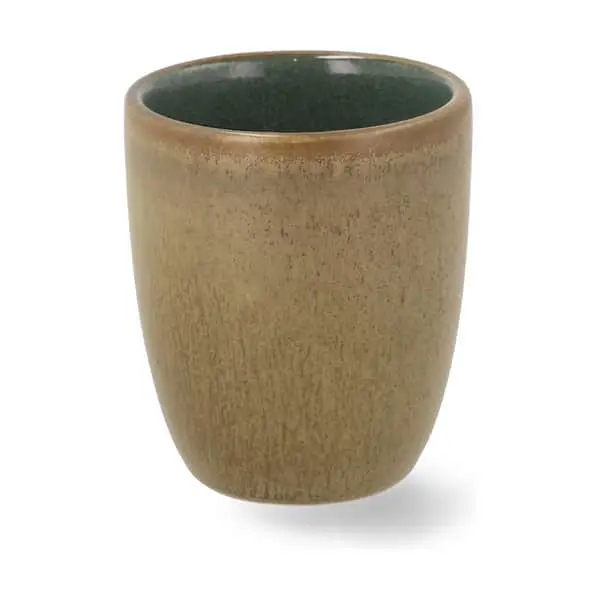 Koppen rummer 9 cl og er i stentøj med en glansfuld glasur på indersiden og med mat reaktiv glasur på ydersiden.
