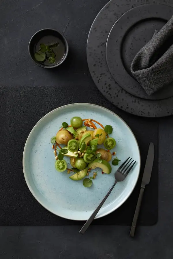 Gastro-tallerkenerne fra Bitz er fremstillet i stentøj med mat og blank overflade, der er designet til at stimulere alle sanser med sit legende farvespil, og den større spiseflade giver plads til endnu mere kreativitet i anretningen.