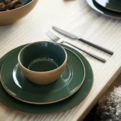 Bitz middagstallerkenen er fremstillet i robust stentøj med mat glasur på ydersiden og blank farvet glasur på spisefladen, som skaber et helt særligt og unikt skær.