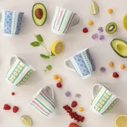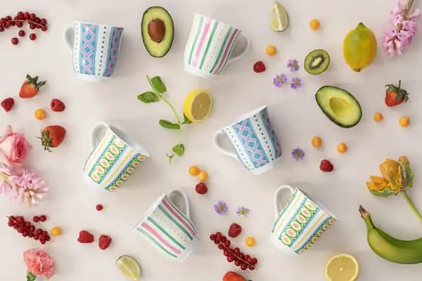 Dagen starter godt – selv en grå mandag – når morgenkaffen serveres i det farverige Eva Krus fra Bjørn Wiinblad.