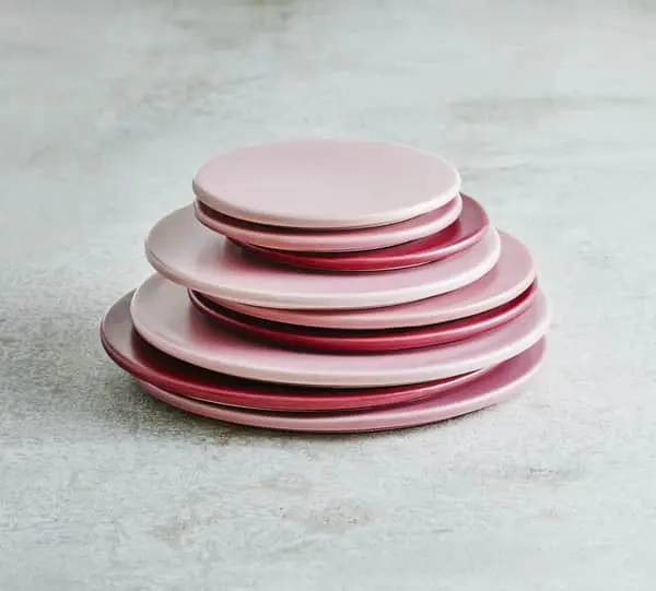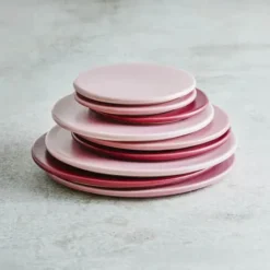 Tallerkenen fremstår i en lys rosa og er fremstillet af stentøj. Tallerkenen tåler opvaskemaskine og mikroovn.