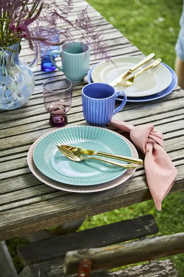 Daisy Colorful seriens stel er udformet i et feminint design med bløde riller, der elegant omkranser måltidet. Tallerkenerne i serien er oplagte til at kreere smukke anretninger på og de fine krus er perfekte til en varm kop kaffe.
