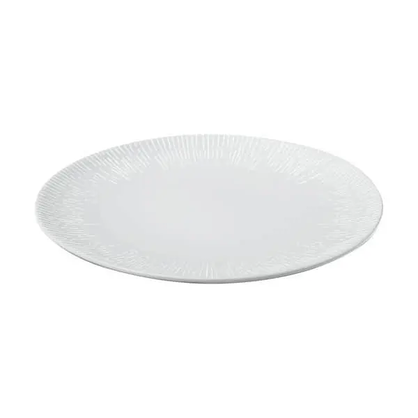 Med en Encore middagstallerken fra erik bagger a/s har du en smuk ramme til både hverdagens frikadeller og weekendens gourmetretter. Den hvide porcelænstallerken har delikate detaljer i glasuren, der ved første blik kan ligne diskrete riller, og som giver middagstallerkenen et organisk og dekorativt strejf. Encore middagstallerken tåler opvaskemaskine og mikroovn og det enkle og praktiske design gør den store tallerken oplagt til hverdagsbrug. Encore tallerken tåler opvaskemaskine og mikroovn.