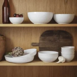 Pastaskålen fra Eva Trio er fremstillet i porcelæn og har fine riller, som kendetegner det øvrige stel fra Legio Nova serien. Udover pasta, har skålen dog mange anvendelsesmuligheder. Går du op i madspild, kan du opbevare resterne fra middagen i skålen, som desuden passer med Eva Trio grydelåg Ø 20 cm – så kan du opbevare maden i køleskabet uden brug af stanniol eller film.