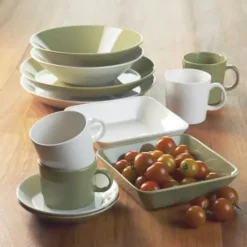 Kaj Franck er designeren bag stellet, som baserer sig på de tre geometriske former; cirklen, firkanten og trekanten. Med sit minimalistiske og samtidig yderst funktionelle design, er serien højtelsket verden over – ikke mindst på grund af sin uopslidelige holdbarhed og tidløse design. Produkterne tåler både kulde, microovn, opvaskemaskine og ovn.