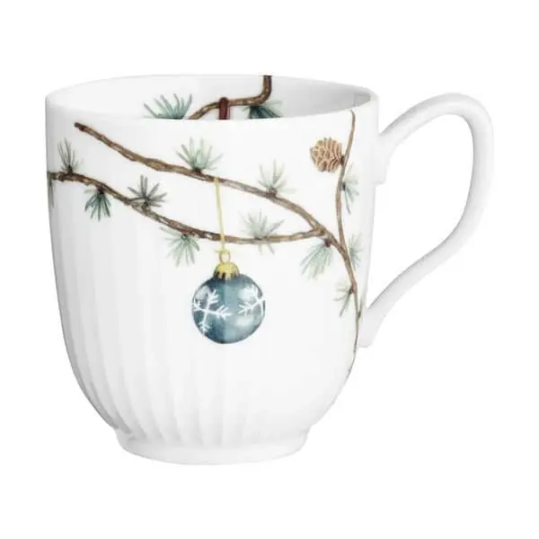 Dette krus fra Hammershøi Jul emmer af jul og julestemning med den grønne lærkegren, julekugler og julehjerter. Hold varmen gennem hele december måned med et varm krus gløgg, varm chokolade eller kaffe/te og nyd det af det smukke krus fra Hammershøi Jul.