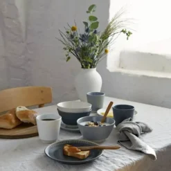 Colorit serien fra Knabstrup Keramik er en farverig tilføjelse til det klassiske Knabstrup stel fra 1960’erne. Stellet består af smukke skåle, krus og tallerkener i forskellige flotte, levende glasurer og farver, der ikke bare udstråler masser af personlighed i hver enkelt nuance, men som også klæder hinanden utroligt godt, når de mixes og matches.