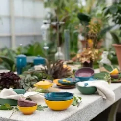 Le Creuset serien Botanique er inspireret af den frodige natur og botanikkens skønhed. De forskellige og naturinspirerede farver – Fig, Nectar, Deep Teal og Artichaut – er dét, der særligt kendetegner denne serie af flotte stentøjsprodukter.