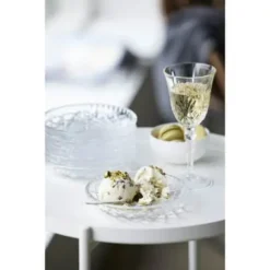 Server den hjemmebagte kage eller en lækker isdessert for dine gæster i disse smukke asietter fra Lyngby glas. Asietterne er fremstillet i krystalglas og er med et fint mønster, som giver den nordiske borddækning perfekt supplement og modspil.
