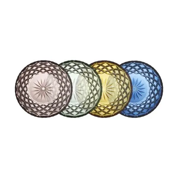 Løft både borddækning og smagsoplevelse med disse smukke asietter fra Lyngby Glas, som er fine i farverne og samtidig reflekterer lyset fint gennem de elegante facetslibninger.
