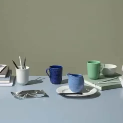 Miks og match dine Rhombe Color krus med og uden hank eller dæk op med din favorit – for en farverig borddækning kan du med fordel mikse de mange farver i Rhombe Color serien. Du kan også lave et fint farvespil ved at blande med den eksisterende Rhombe kollektion i hvid.