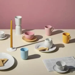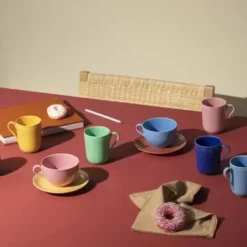 Miks og match dine Rhombe Color krus med og uden hank eller dæk op med din favorit – for en farverig borddækning kan du med fordel mikse de mange farver i Rhombe Color serien. Du kan også lave et fint farvespil ved at blande med den eksisterende Rhombe kollektion i hvid.