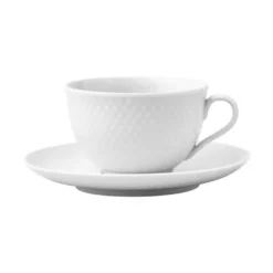 Lyngby Porcelæn Rhombe kop med underkop er en elegant detalje på kaffebordet.