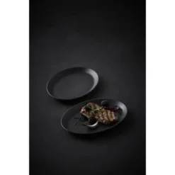 Gør grillmaden ekstra lækker at se på med disse flotte steaktallerkener fra Morsø. Tallerkenerne har en flot, oval facon med højere kant i den ene side, så saucen eller saft fra bøffen samles og bliver på tallerkenen.