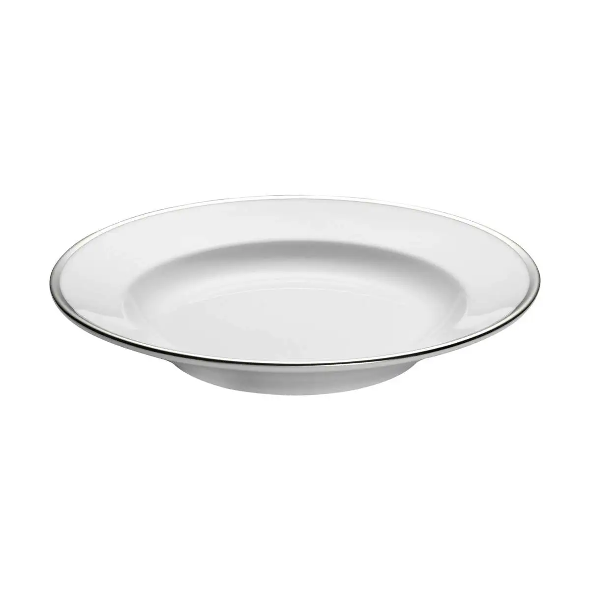 Server en lækker omgang spaghetti allo scoglio på Bistro pastatallerkenen fra franske Pillivuyt. Bistro-serien er kendetegnet ved et enkelt, elegant design i hvidt porcelæn med en sølvkant.