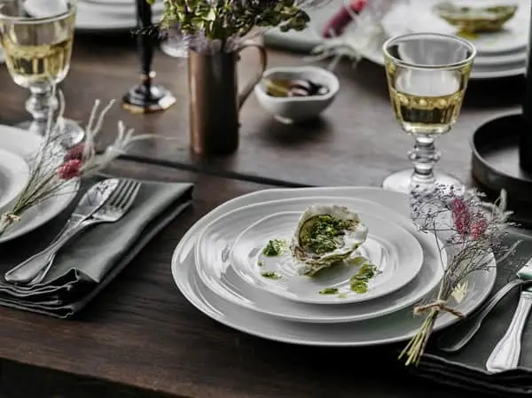 Det bløde formsprog, som tallerkenen fra Pillivut er designet med, giver den perfekte setting til en smuk nordisk borddækning.