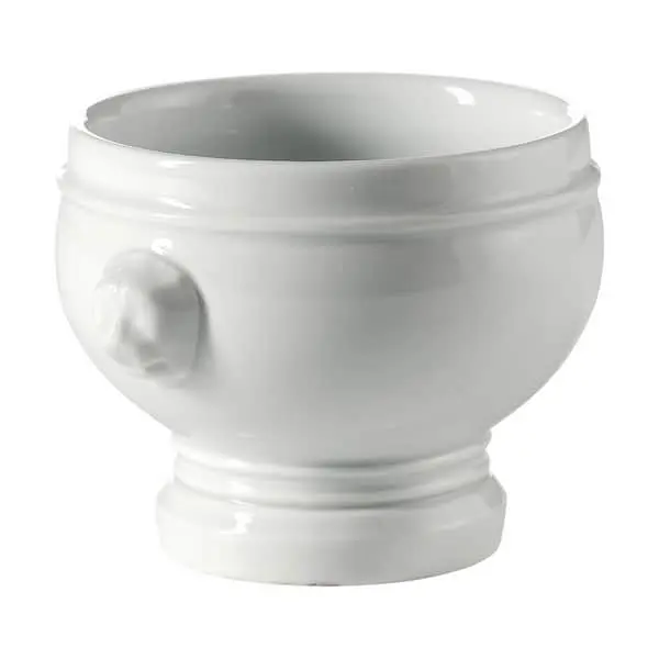 Pillivuyts klassiske, hånddrejede Serie Originale suppeskål med løvehoveder som hanke, lader dig servere suppen, som sad I på en fransk bistro.