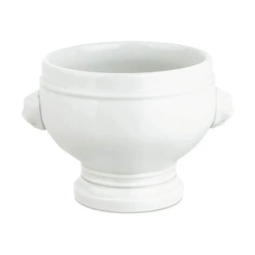 Pillivuyts klassiske, hånddrejede Serie Originale suppeskål med løvehoveder som hanke, lader dig servere suppen, som sad I på en fransk bistro.