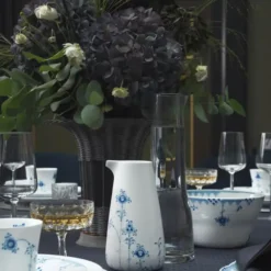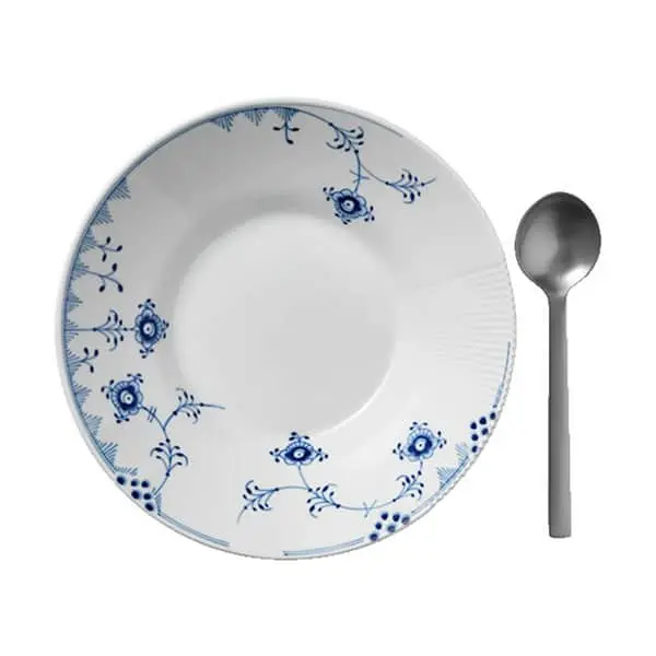 Porcelæn fra Royal Copenhagen har i mere end 230 år glædet mennesker i Danmark og verden over. Med stor respekt for de eksisterende metoder skaber Royal Copenhagen tidens look og mode. Blå Elements enkle og moderne udtryk gør stellet til et perfekt hverdagsstel med et strejf af luksus. Blå Elements serien fra Royal Copenhagen er en moderne kombination af flere Royal Copenhagen klassikere. Stellet har det blå karakteristiske mønster og riflerne, som vi kender det fra det klassiske musselmalede stel, kanten fra Halvblonden og takkerne fra Flora Danica.