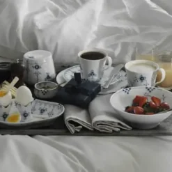 Porcelæn fra Royal Copenhagen har i mere end 230 år glædet mennesker i Danmark og verden over. Med stor respekt for de eksisterende metoder skaber Royal Copenhagen tidens look og mode. Blå Elements enkle og moderne udtryk gør stellet til et perfekt hverdagsstel med et strejf af luksus. Blå Elements serien fra Royal Copenhagen er en moderne kombination af flere Royal Copenhagen klassikere. Stellet har det blå karakteristiske mønster og riflerne, som vi kender det fra det klassiske musselmalede stel, kanten fra Halvblonden og takkerne fra Flora Danica.
