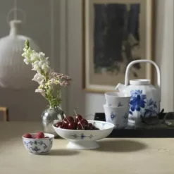 Porcelæn fra Royal Copenhagen har i mere end 230 år glædet mennesker i Danmark og verden over. Med stor respekt for de eksisterende metoder skaber Royal Copenhagen tidens look og mode. Blå Elements enkle og moderne udtryk gør stellet til et perfekt hverdagsstel med et strejf af luksus. Blå Elements serien fra Royal Copenhagen er en moderne kombination af flere Royal Copenhagen klassikere. Stellet har det blå karakteristiske mønster og riflerne, som vi kender det fra det klassiske musselmalede stel, kanten fra Halvblonden og takkerne fra Flora Danica.