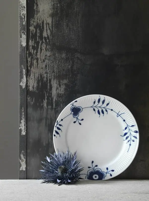 I 2000 skabte Karen Kjældgård-Larsen Blå Mega Mussel serien med inspiration fra det velkendte musselmalet – småt og blåt. Blå Mega Riflet er beviset på, at selv de bedste traditioner kan holde til at blive udfordret – stort og blåt. De store penselstrøg på det hvide porcelæn skaber et sofistikeret og kontrastfyldt udtryk, der klæder det moderne, nordiske hjem.