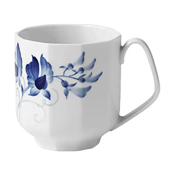 Kruset med det smukke Ærteblomst-motiv hviler på en lav søjlefod, som fremhæver det elegante design. I forlængelse af krusets kantede form, er håndtaget på samme måde kantet og let. I serien Blomst fra Royal Copenhagen kan du få krus med forskellige motiver, som sammen skaber et nydeligt kaffebord.