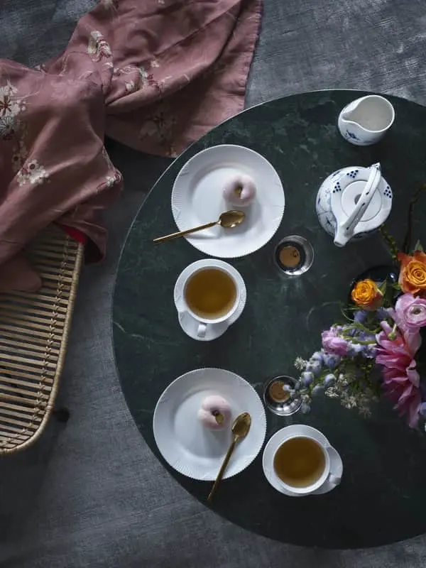 Du får den elegante perlekant fra Flora Danica og Musselmalet Halvblonde, og riflerne fra Musselmalet Riflet er også blevet lånt ud.