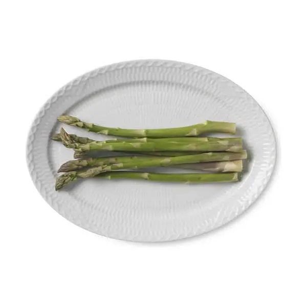 Lad det ovale fad fra Royal Copenhagen Hvid Halvblonde danne ramme om alverdens lækkerier. Fadet er elegant alene, men står også flot sammen med andre stel-elementer.
