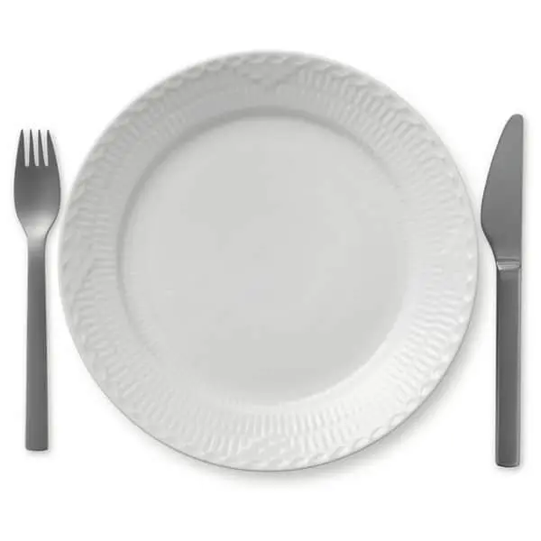Middagsbordet får et yndefuldt præg, når det er dækket med Hvid Halvblonde middagstallerkenen fra Royal Copenhagen.