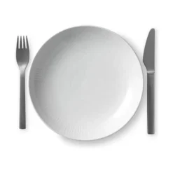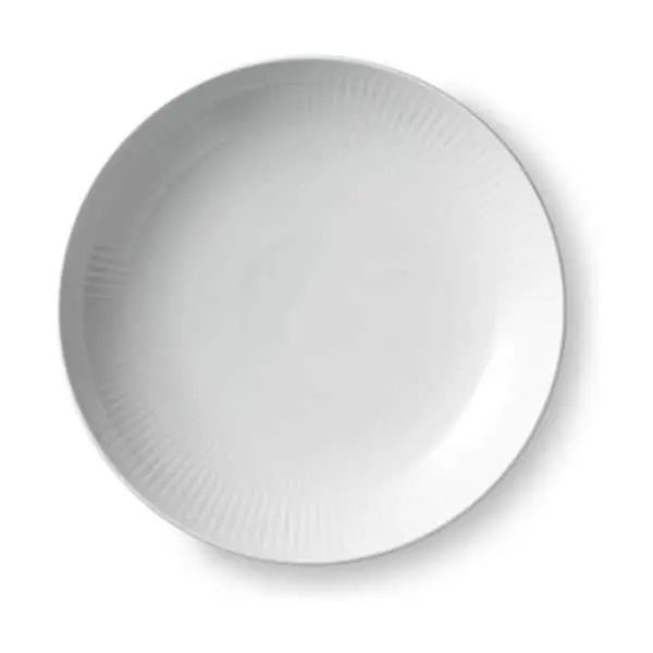 Royal Copenhagen har skabt en moderne tallerken, der kan få et simpelt måltid til at se raffineret ud. Tallerkenens let forhøjede kant danner sammen med de klassiske riller en sofistikeret ramme om maden.