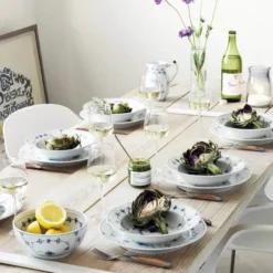 Tip: Du kan sagtens kombinere stellet med andre serier fra Royal Copenhagen. F.eks går stellet rigtig godt sammen med det Hvid Riflet stel, hvor det vil få lov til at stjæle opmærksomheden med sit yndige blå mønster.