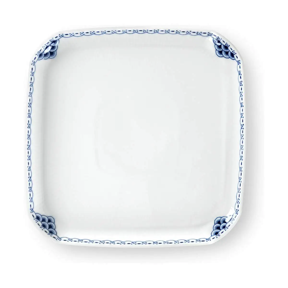 Skab en anderledes anretning på bordet med den firkantede Prinsesse tallerken fra Royal Copenhagen. Den er en charmerende tilføjelse til din porcelænssamling, og kan også bruges til opbevaring af dine smykker.