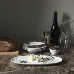 Sort Mega Riflet er håndmalet porcelæn fra Royal Copenhagen. I 2006 skabte Karen Kjældgård-Larsen Mega Mussel serien med inspiration fra det velkendte musselmalet – småt og blåt. Sort Mega Riflet er beviset på, at selv de bedste traditioner kan holde til at blive udfordret – stort og sort. De sorte penselstrøg på det hvide porcelæn skaber et sofistikeret og kontrastfyldt udtryk, der klæder det moderne, nordiske hjem.