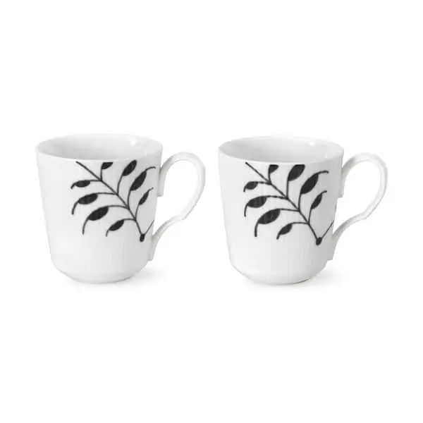 De to Sort Mega Riflede krus i porcelæn fra Royal Copenhagen er et stykke håndmalet kulturhistorie. Med det moderne Mega Mussel mønster har krusene et ungt og unikt udtryk. Med kopper som disse kan du snildt invitere veninderne på kaffe.