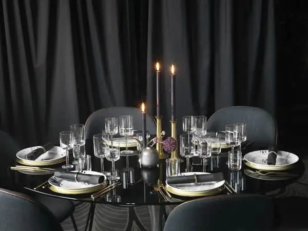 Sort Mega Riflet er håndmalet porcelæn fra Royal Copenhagen. I 2006 skabte Karen Kjældgård-Larsen Mega Mussel serien med inspiration fra det velkendte musselmalet – småt og blåt. Sort Mega Riflet er beviset på, at selv de bedste traditioner kan holde til at blive udfordret – stort og sort. De sorte penselstrøg på det hvide porcelæn skaber et sofistikeret og kontrastfyldt udtryk, der klæder det moderne, nordiske hjem.