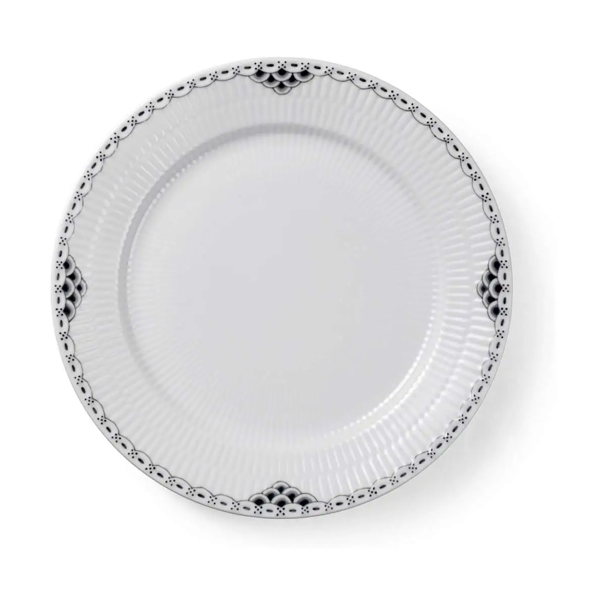 Dæk op til underspillet elegance i din borddækning med den smukke Sort Riflet Blonde middagstallerken fra Royal Copenhagen.
